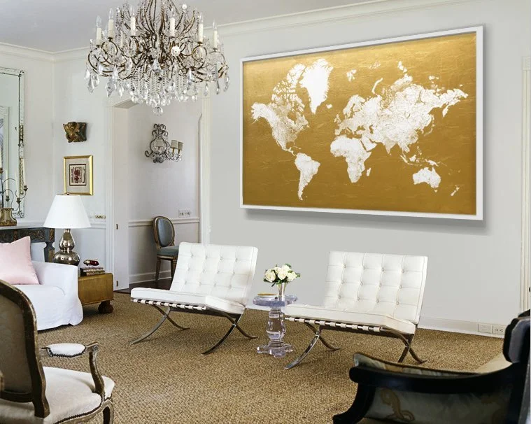 Whilst looking into various historical maps Eason discovered Charles Booth’s Descriptive Map of London Poverty from 1889. Booth set out to define levels of poverty and wealth in London, house by house using a colour coded system. Examples of these colours included Black defining Lowest class; Red defining Middle class and Yellow defining the Upper class. Continuing on the theme of creating abstract images from reality, Eason discovered the defined colours became an abstract image in themselves. By removing the colours and replacing them with one colour; Gold, he drew on the egalitarian nature of the city. Since this first London artwork, the city where he is based, he has used present day and historical maps of significant cities and redefined the buildings in gold. The context of these works also represent a snapshot of our ever-changing landscape that could potentially be completely re-written in as little as a decade.